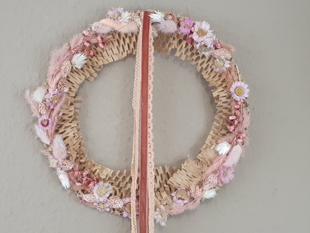Arbeiten mit Naturmaterialien: Nutzen Sie eine Vielzahl von Naturmaterialien wie Naturfasern, Blätter, Trockenblumen und Naturpapiere, um Ihrem Kranz eine natürliche und ansprechende Optik zu verleihen.